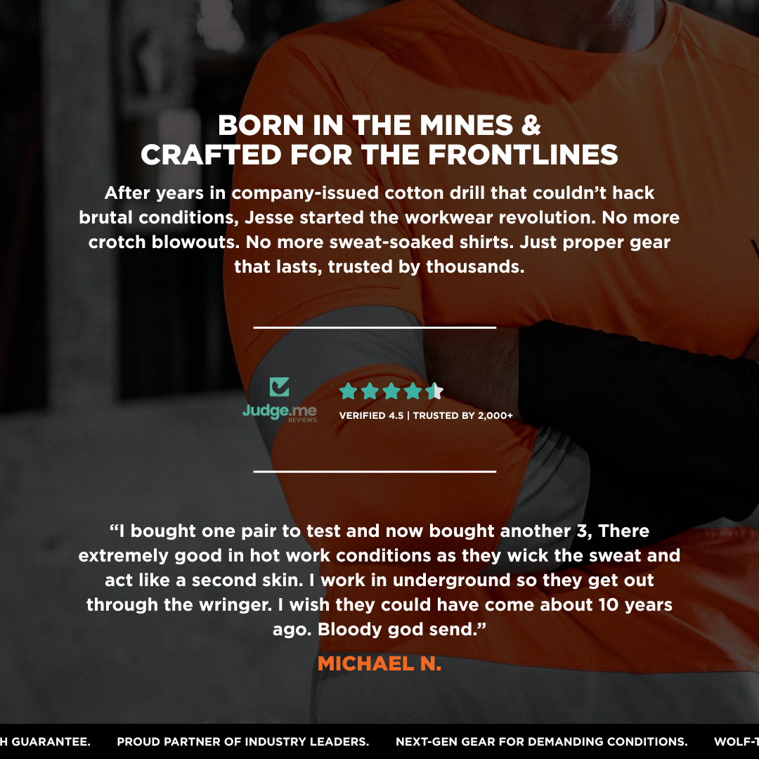 Every item comes with our no-BS comfort + fit guarantee. Chuck it on. If it’s not the right fit or doesn't feel right on the job, send it back within 60 days for a full refund. No dramas. Built for blokes & sheilas who want gear that looks good, feels great, and lasts longer.