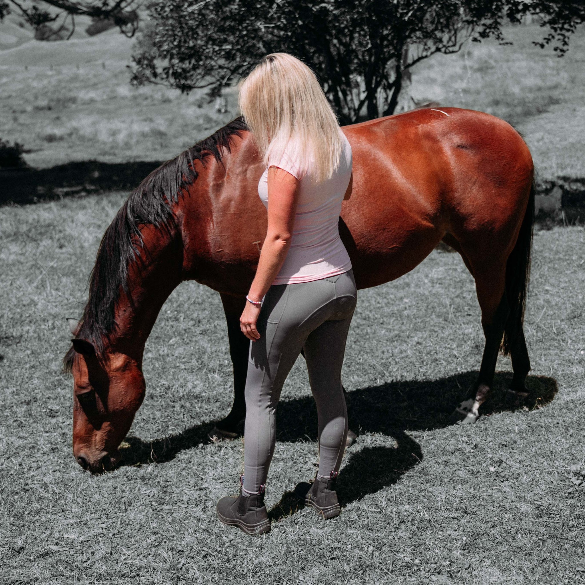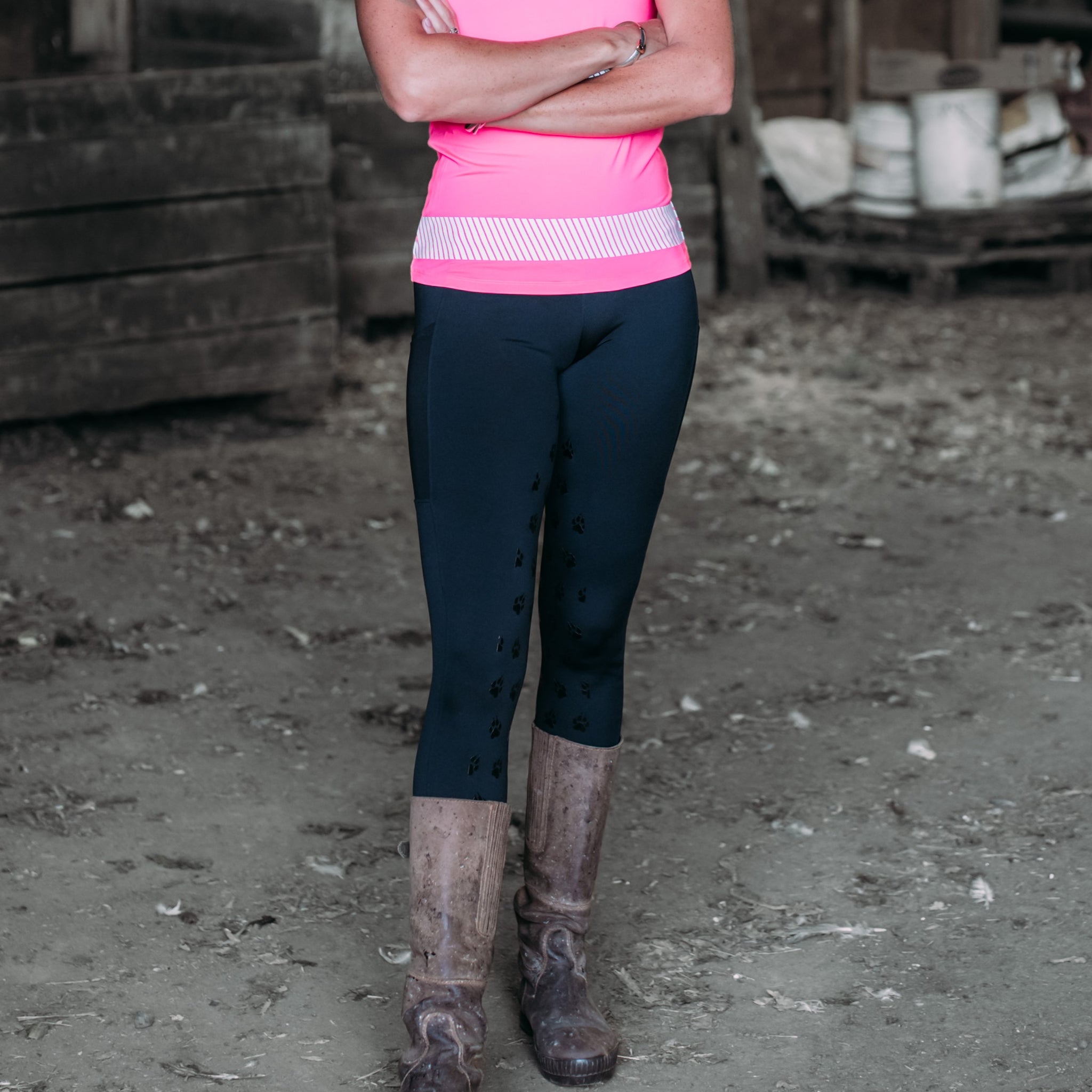 Crafted from a luxurious blend of 78% polyester and 22% spandex, the Cavalry Series Leggings offer exceptional stretch and flexibility for work, play, or daily wear. With a 260gsm weight, they balance warmth and breathability while managing moisture to keep you dry year round. A high rise, non roll waistband ensures a secure fit, and SPF 50+ protection shields you from harmful UV rays. Cell phone pockets on each side keep essentials close, with full seat and inner leg silicone prints for superior grip in the saddle. Final sale – no returns or exchanges.