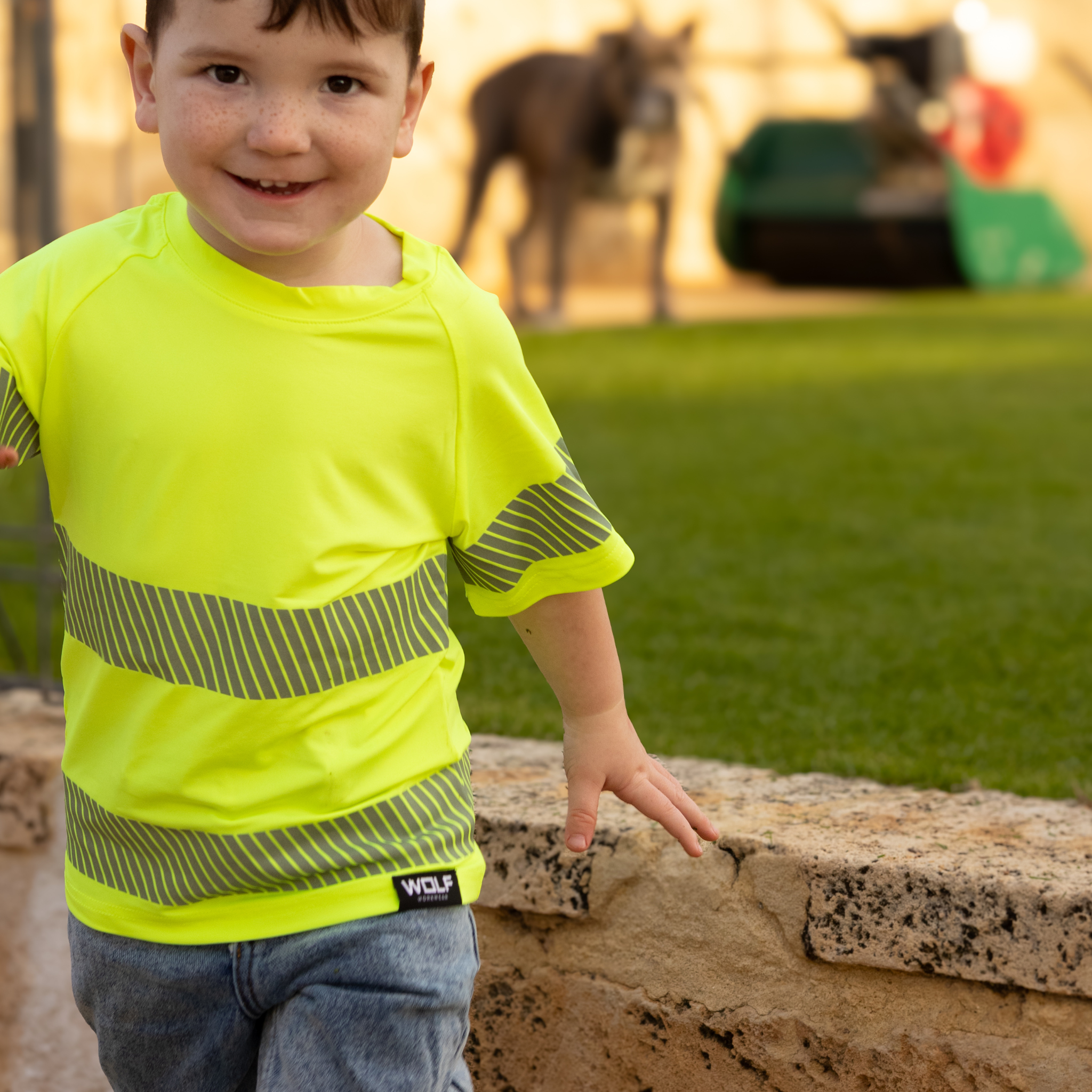 Who says the grown ups get all the good gear? We took our legendary Assault Flex adults tee and made it for the little wolves. Stretchy as a rubber band and light as a feather so they can run wild in comfort. Made from tough polyester that keeps its shape wash after wash. 50mm printed reflective tape keeps them seen and safe, and the UV resistance means they're ready for all day outdoor adventures. Available in Electric Yellow, Radical Pink and Flaming Orange. Built for kids who play hard, get messy and mean business in the playground.
